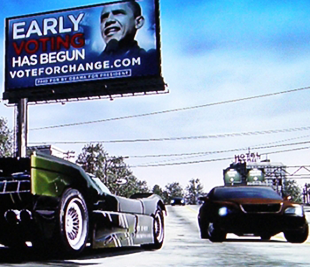 Obama’s campaign is running ads in Burnout Paradise on XBOX 360. Fittingly hi-tech, these ads appeal to younger, connected voters; encouraging them to vote early. (via)