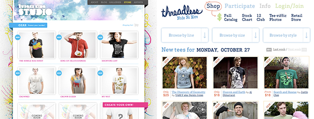 This is a shot Burger King Studio’s Store side-by-side with Threadless.com — note the similarities in the presentation of the t-shirts, the use of hipster models and solicitations to participate/create your own shirts. Despite the similarities, I could give BK a pass on this one as more of an “inspired by” than a rip-off.
