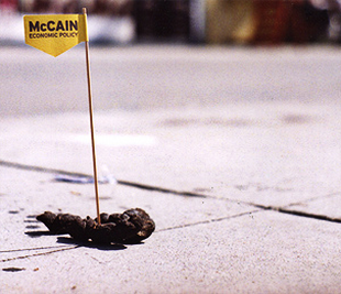 The McCain campaign is taking microtargeting literally with this more grass roots/lo-fi approach, This example touts McCain’s economic policy — presumably suggesting it’s “the sh**”*. (via)
